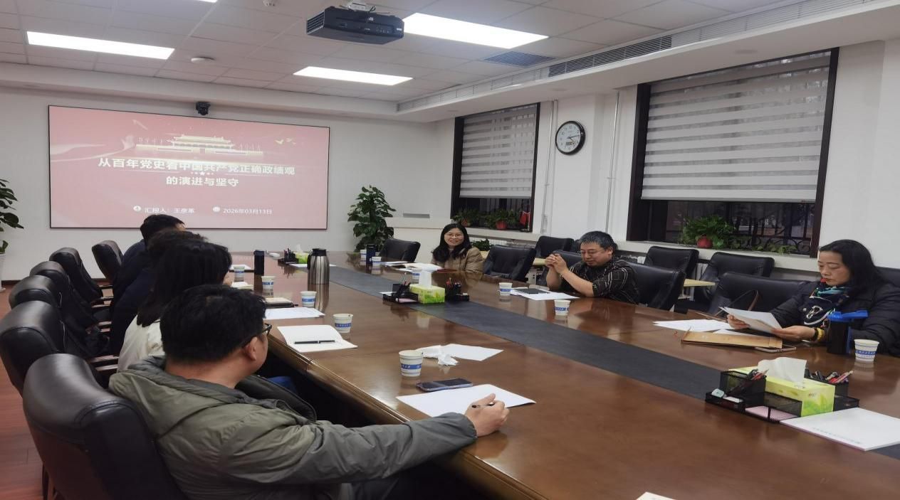 党委书记王彦革同志以“从百年党史看中国共产党正确政绩观的演进与坚守”为题,为德法与形势政策系全体党员讲授专题党课,会议由德法与形势政策系支部书记宫淑燕主持。