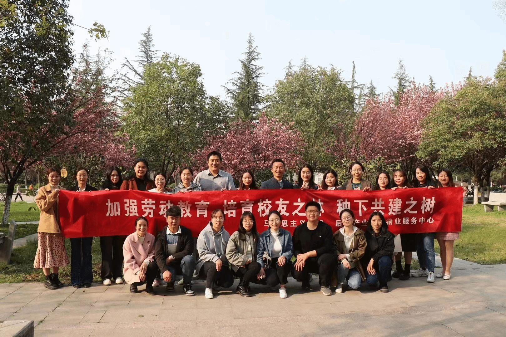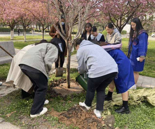 春风朝夕起,吹绿日日深。3月31日下午,在毕业到来之际, 91大神 和后勤产业集团物业服务中心共同开展“加强劳动教育 培育校友之林 种下共建之树”主题教育活动。在学院党委副书记(主持工作)蒲传新、后勤产业集团周伟老师的带领下,学院机关党支部、后勤产业集团物业服务中心党支部及2023届毕业生一同在长安校区91大神 楼北侧樱花林种下四棵金桂树和一棵樱花树,取意“劳动之树、校友之树、共建之树”。