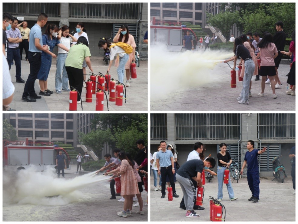 院楼前的空旷场地开展消防演练活动,师生们踊跃参加到消防演练中,纷纷运用刚学到的灭火方法,在模拟练习中逐渐深化消防意识和自我保护意识。