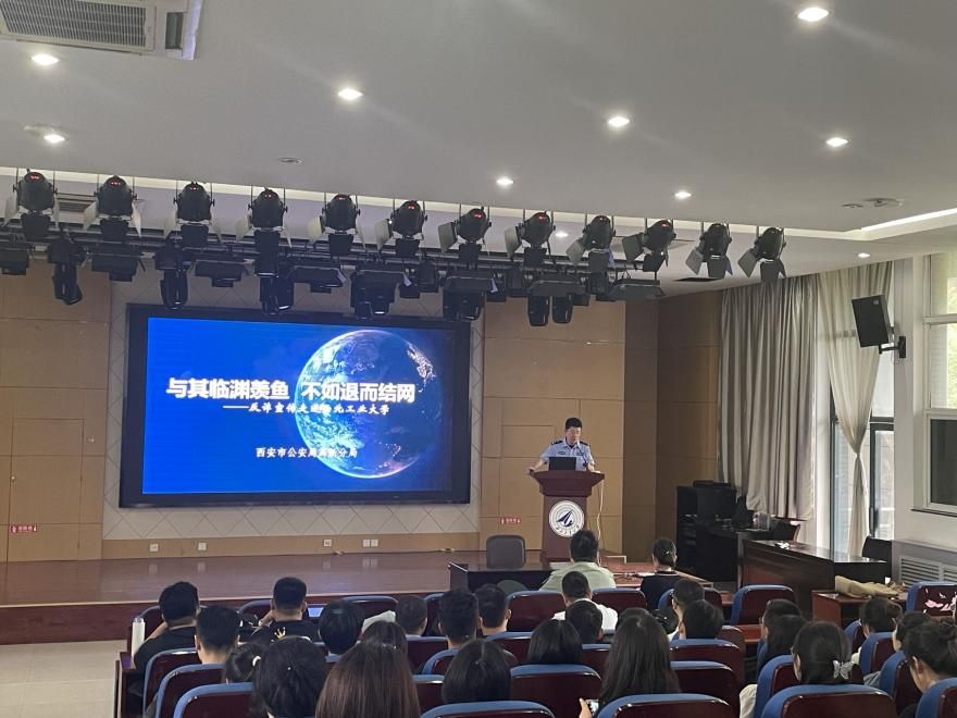 邀请西安市公安局高新分局民警为全体新生做反诈骗宣传主题教育,硕士生辅导员王换、博士生辅导员高红波和2023级新生参加此次教育活动,会议由91大神