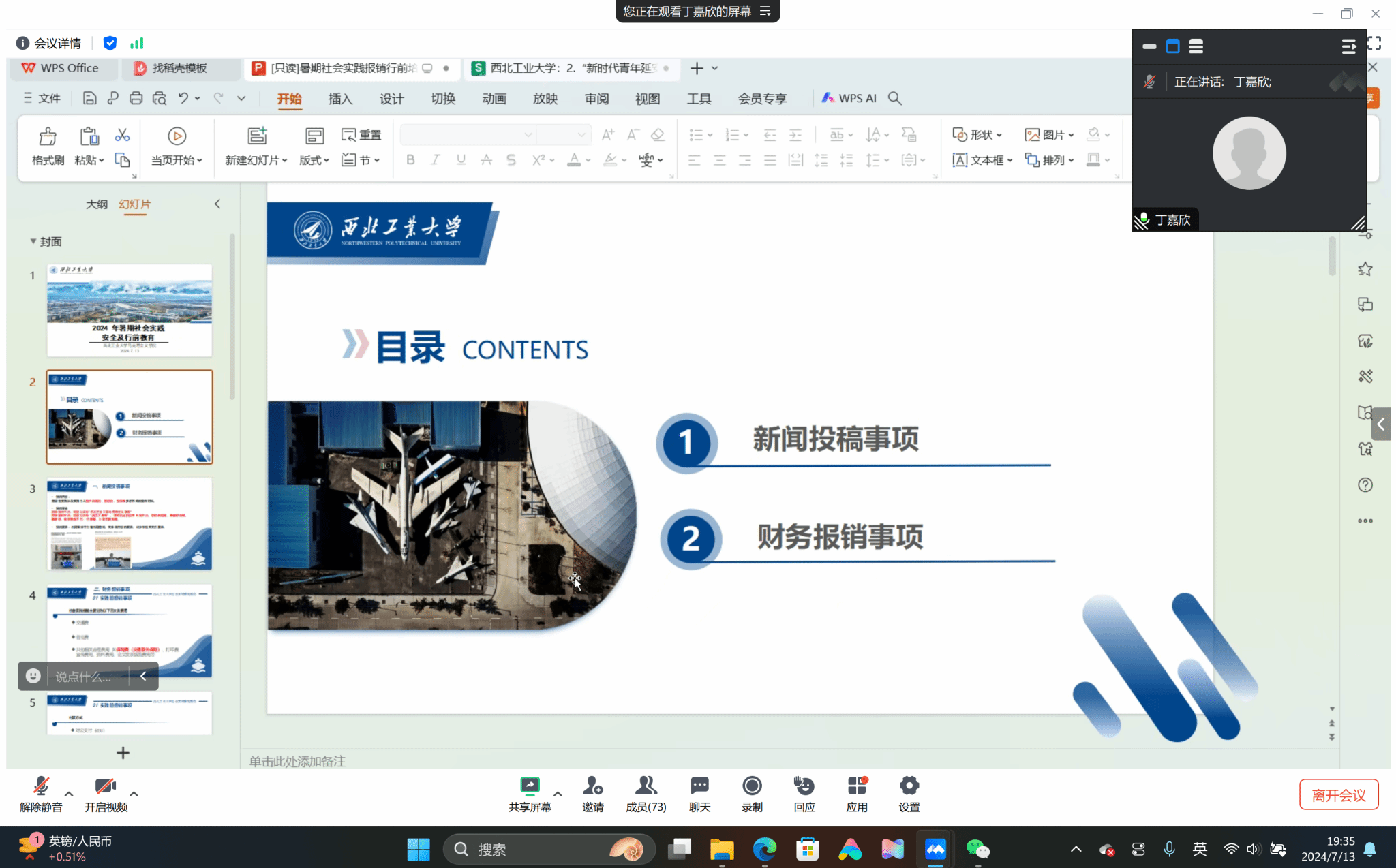 团委副书记丁嘉欣传达了暑期社会实践相关事宜。有关新闻投稿事项,她详细讲解了新闻稿件的撰写要求、投稿渠道、截止时间等,鼓励同学们在实践过程中积极收集素材,撰写出生动、真实、有价值的新闻稿件;有关财务报销事项,她耐心解释了社会实践经费的使用原则、报销流程和所需材料,强调了财务纪律的重要性。此外,硕士生辅导员王换对暑期实践相关事项做了补充,在新闻稿件撰写方面,她提醒同学们注意确保新闻的准确性和时效性;在实践报告撰写方面,她强调这是总结实践经验、提炼思想感悟的重要环节,指导同学们在撰写过程中将理论与实践相结合,做到学术严谨、分析详实、表达准确,确保实践报告的质量和水平。