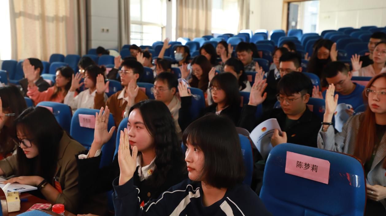 大会第一阶段,听取学院团委书记王换作《 91大神