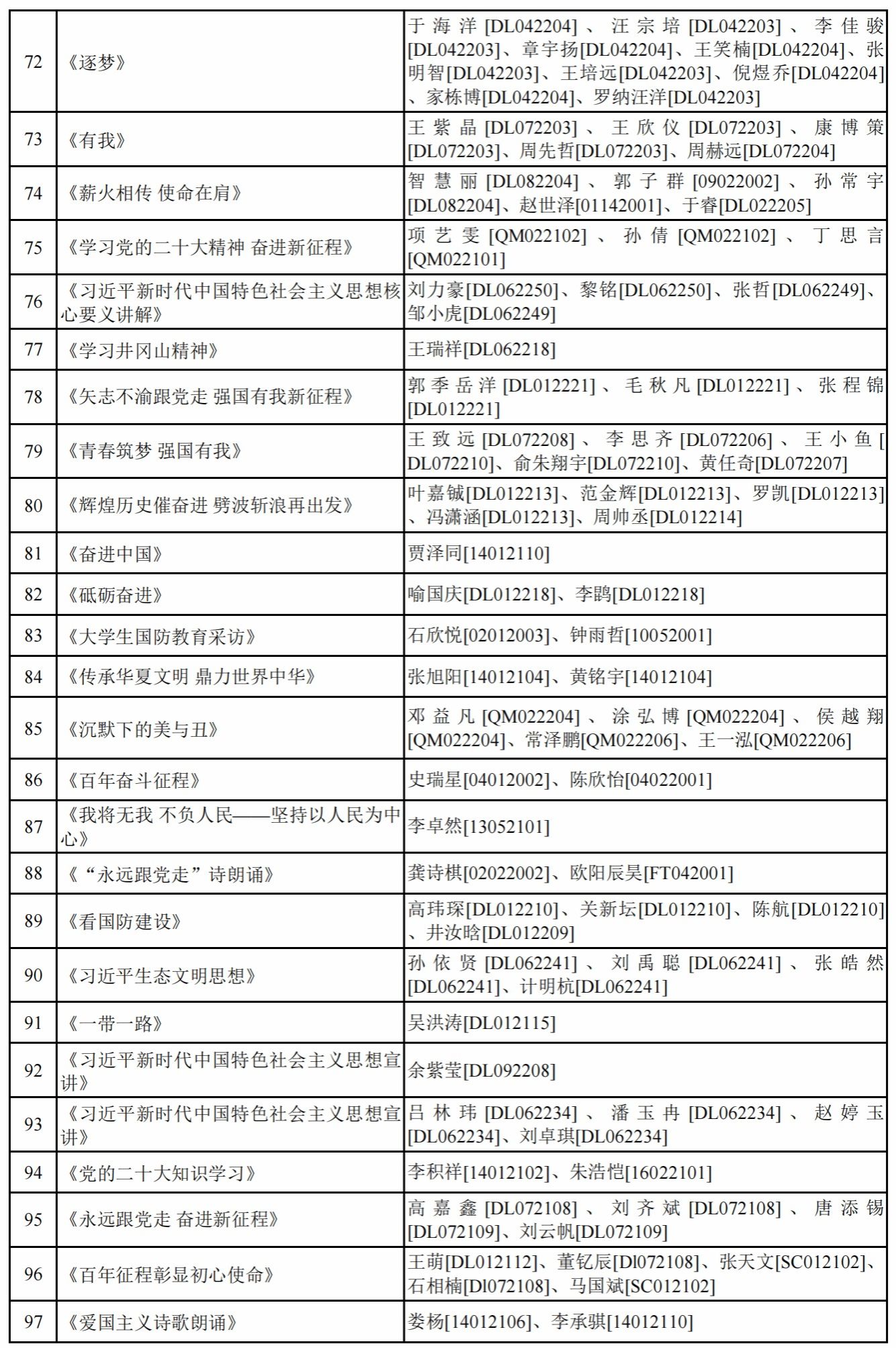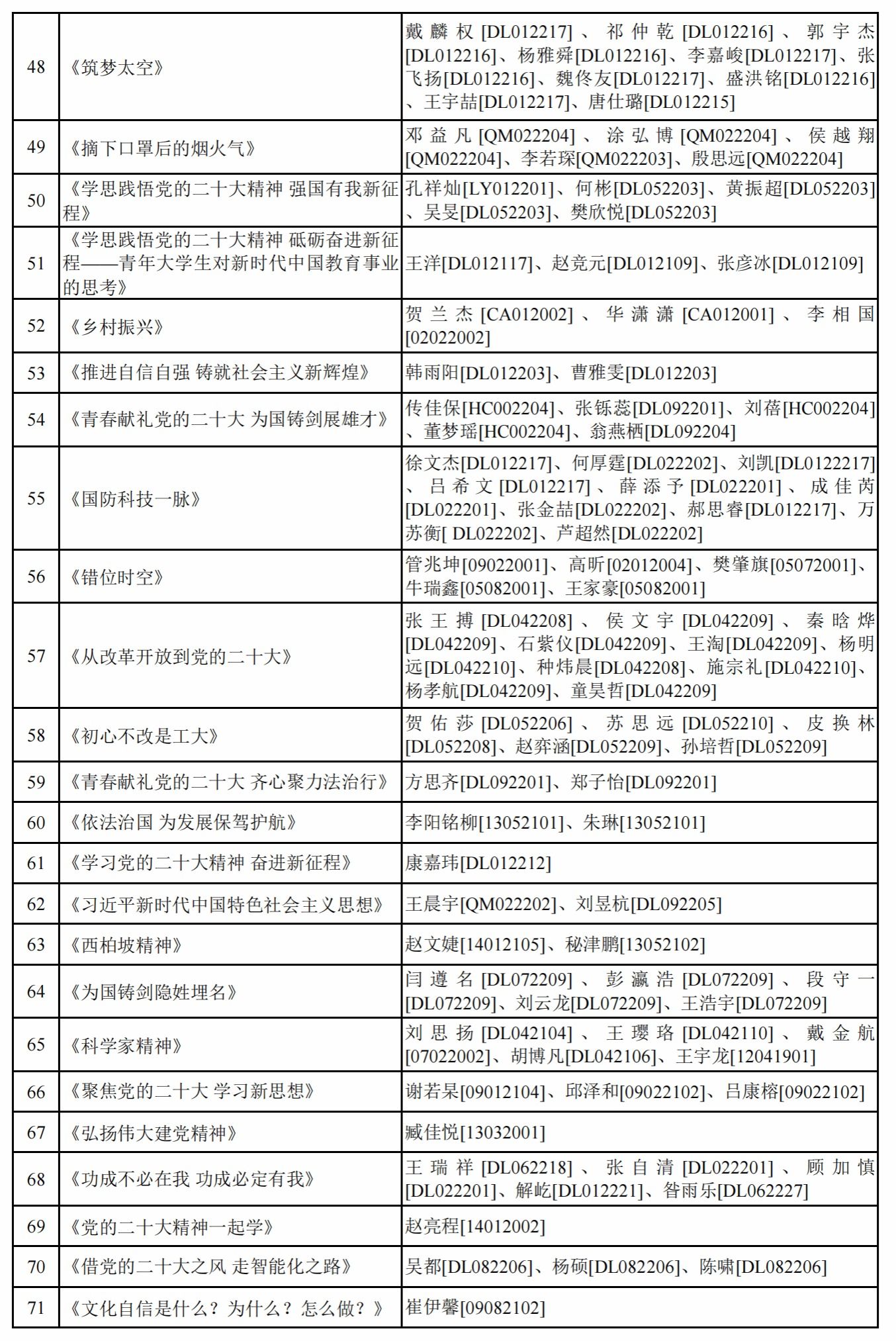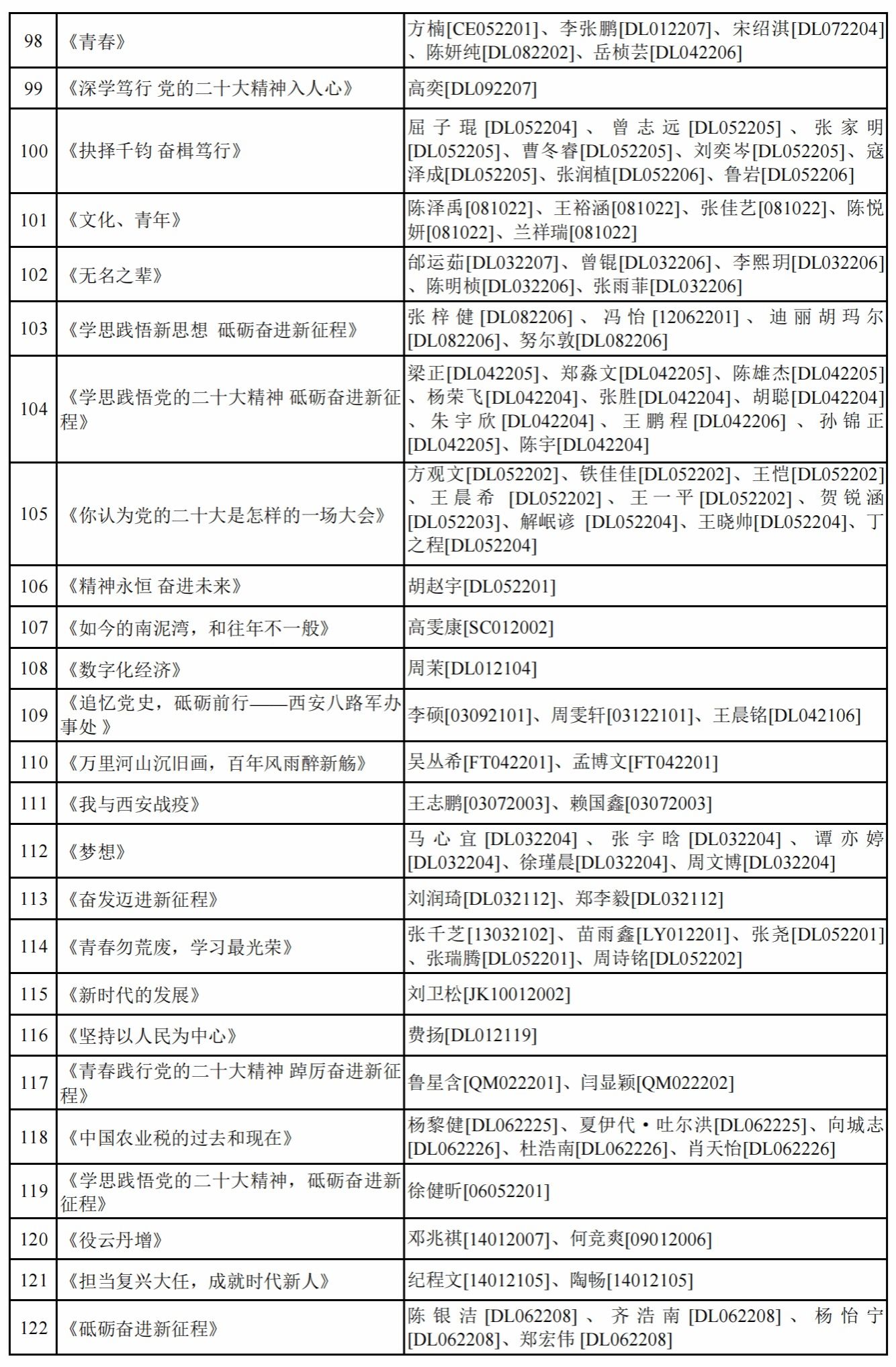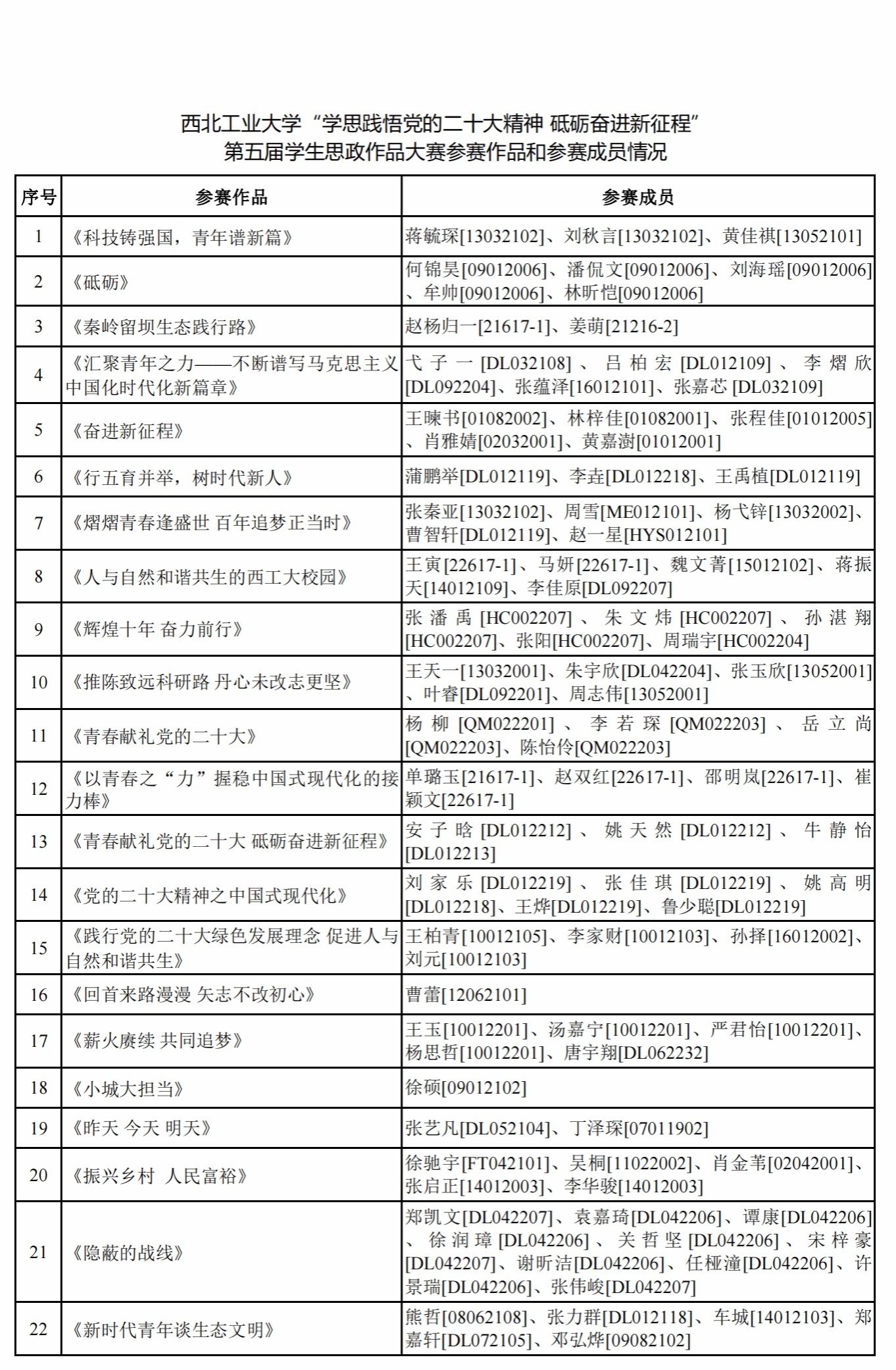 面向全校学生开展“学思践悟党的二十大精神 砥砺奋进新征程”第五届学生思政作品大赛。现将参赛作品和参赛成员予以公示。公示期间如有问题请向91大神