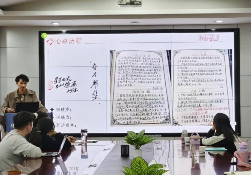 杨京翰以“选调生备考策略与成长路径”为主题,从报考情况、备考心得、详细规划、自我调节四个方面系统梳理了不同省份选调生备考经验。“积跬步、用绵力、聚沙成塔。”杨京翰结合自身备考实战经历,对比了不同省份笔试侧重点,总结出选调生考试的共性规律。分享会上展示的长期规划、学习工具、备考笔记、具体试题案例分析等实用工具,干货满满,为有志于考取选调生的同学提供了切实可行的参考范本,帮助大家在备考过程中少走弯路,有效提升备考效率与成功率。