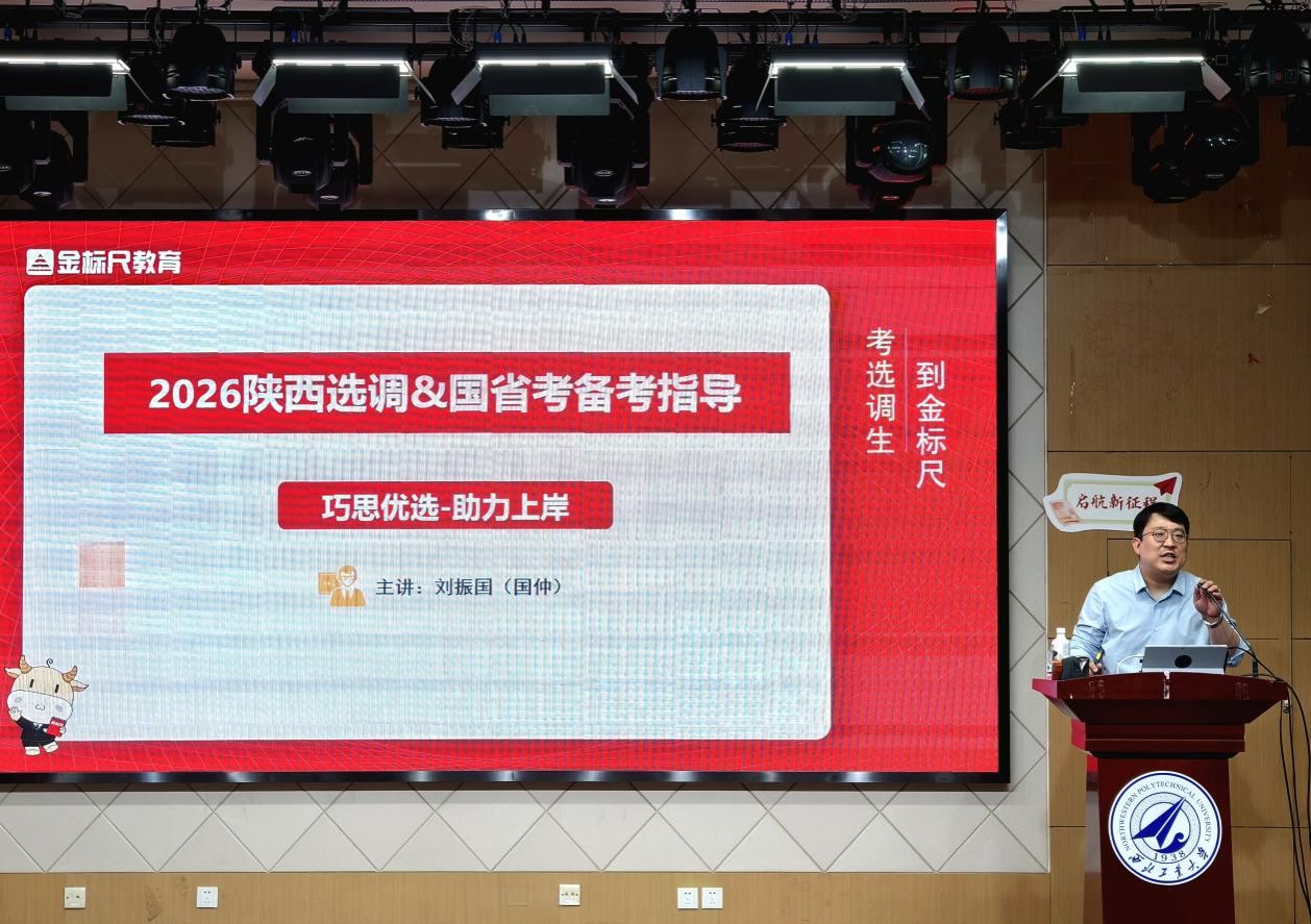 于5月9日下午在学院207报告厅举办了“职点迷津·公略指南”系列活动第二期,特邀金标尺教育机构国仲老师作题为“2026陕西选调&国省考备考指导”的讲座。本次活动既是一场实用性强、干货满满的选调备考培训,也是一次面向广大团员青年的主题团日教育。讲座由学院团委书记、硕士生辅导员王换主持。