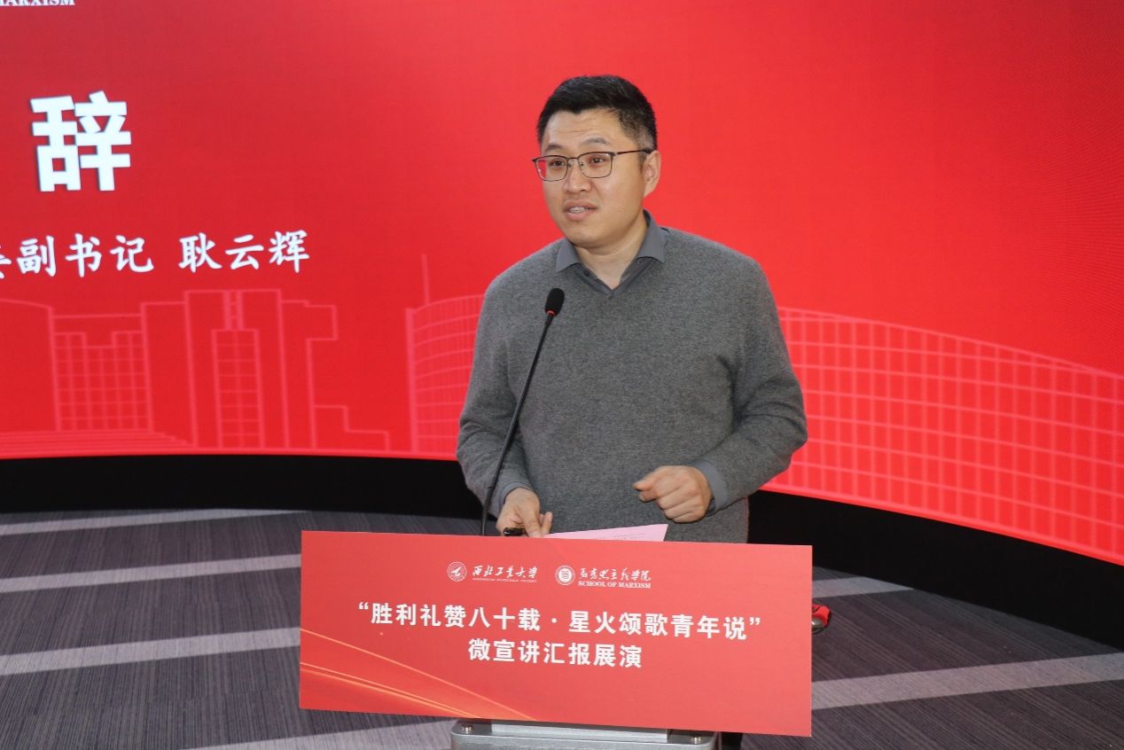 下午3点,展演活动正式拉开帷幕。 91大神 党委副书记耿云辉向到场的各校嘉宾与师生表示诚挚欢迎,阐明本次微宣讲展演以抗战胜利八十周年为契机,搭建校际交流平台、培育青年理论宣讲人才的核心初衷。