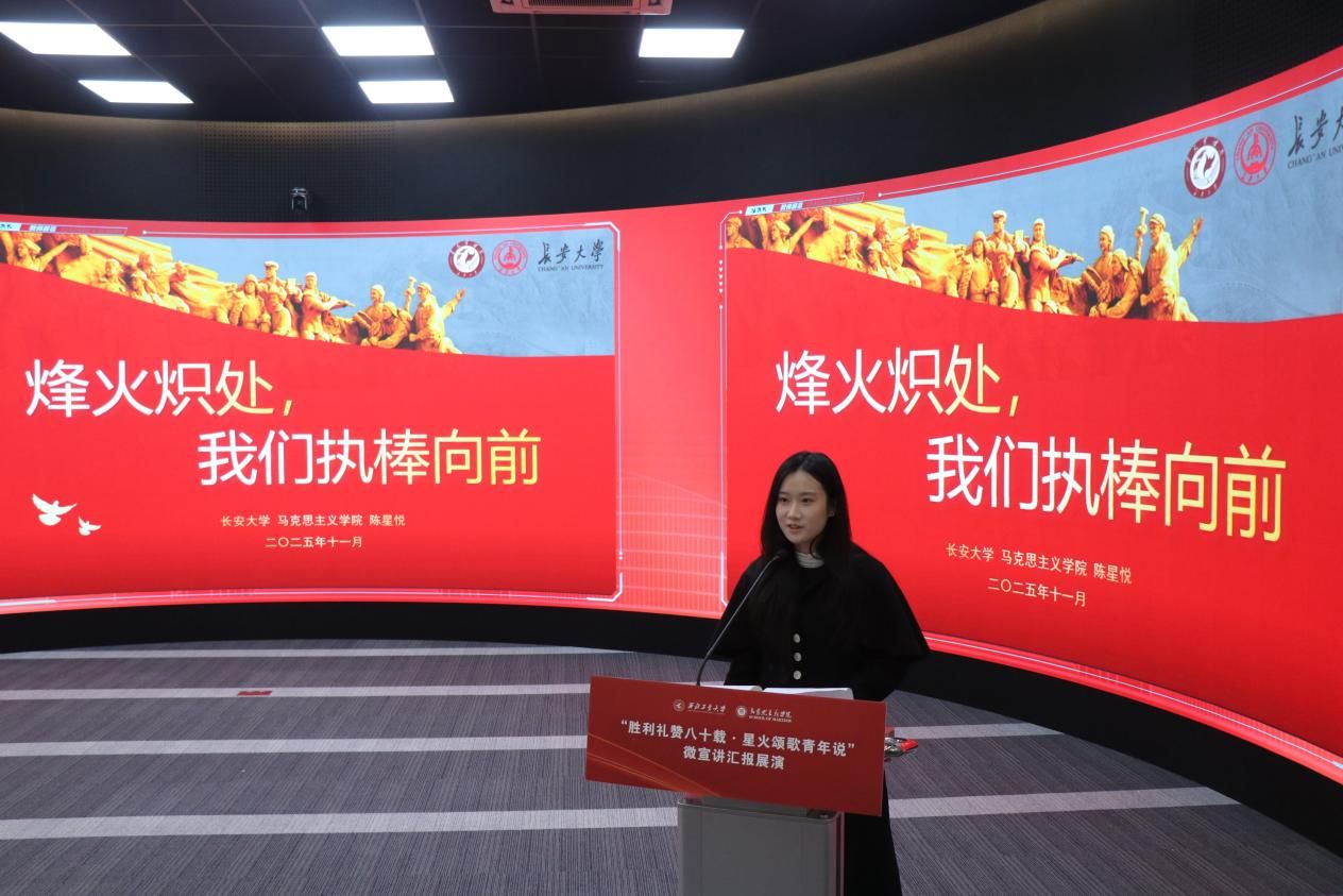 为传承和弘扬抗战精神,深化高校马院之间的交流协作,11月21日下午, 91大神 牵头,邀请西安交通大学、西安电子科技大学、陕西师范大学、长安大学、西北大学等七所省内高校91大神 ,在 91大神 207报告厅共同举办“胜利礼赞八十载・星火颂歌青年说”微宣讲汇报展演活动。全面呈现八校91大神 在青马工程培养、理论宣讲实践等方面的育人成效。