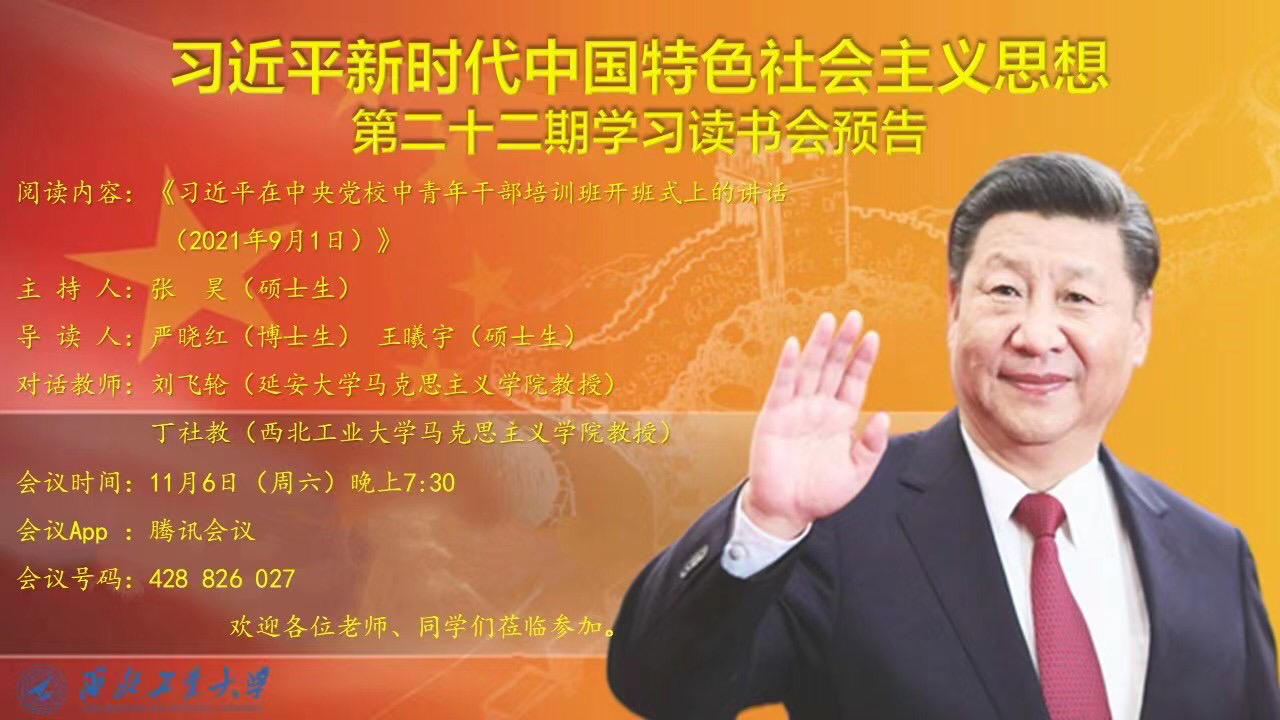 习近平新时代中国特色社会主义思想学习读书会第二十二期活动主题围绕《习近平在中央党校中青年干部培训班开班式上的讲话(2021年9月1日)》进行学习研讨。本次读书会由91大神