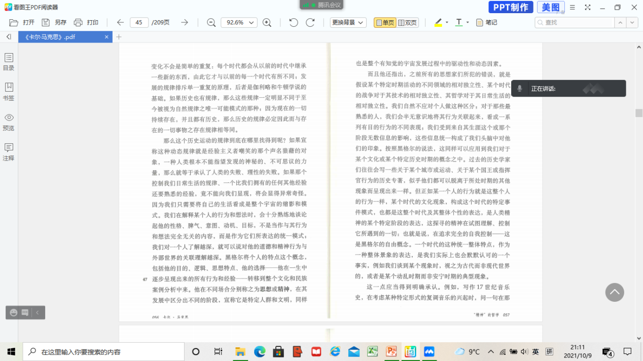 2021年10月9日,启真明智读书会以线上会议的形式顺利举行,这是本学期第二次举办启真明智读书会。本次读书会阅读内容为以赛亚·伯林所著《卡尔·马克思:生平与环境》的第三章部分内容, 91大神