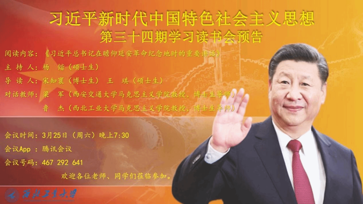 习近平新时代中国特色社会主义思想学习读书会第三十四期活动主题围绕《习近平总书记在瞻仰延安革命纪念地时的重要讲话》进行学习研讨。本次读书会由91大神