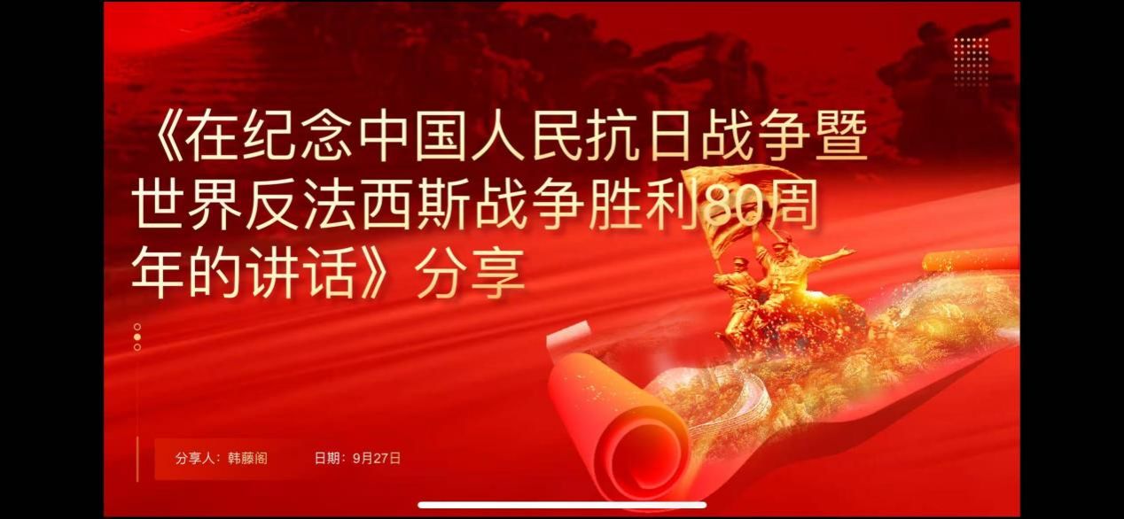 习近平新时代中国特色社会主义思想学习读书小组第六十期活动以《习近平在纪念中国人民抗日战争暨世界反法西斯战争胜利80周年大会上的讲话》为主题进行学习研讨。本次读书会由91大神