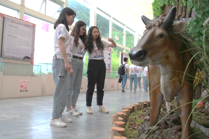 图为青马实践队队员参观木耳博物馆