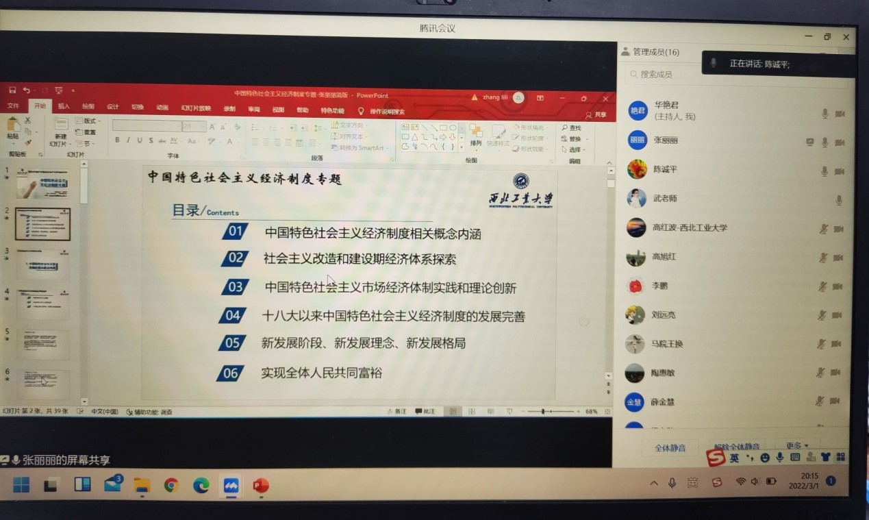 “毛泽东思想和中国特色社会主义理论体系概论”教学团队召开线上集体备课会,做好迎接新学期的充分准备。本次集体备课主题是明确新学期“毛泽东思想和中国特色社会主义理论体系概论”课程的教学安排与专题教学内容研讨。会议由马克思主义中国化研究系教学主任华艳君老师主持,马中化系全体教师参加。
