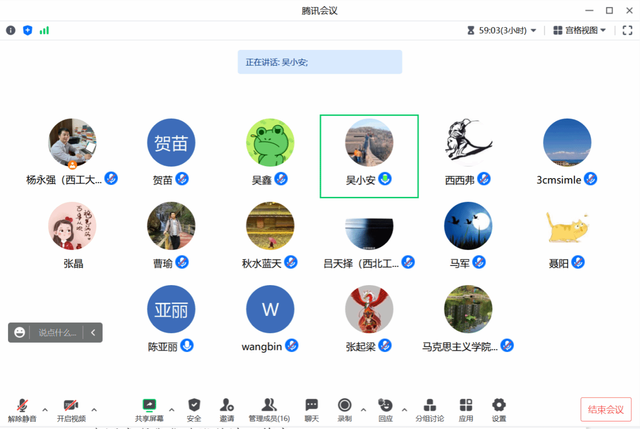 最后,与会的其他各位老师分别从人类文明新形态、工业革命、人工智能、现代性与后现代性、中国传统文化、与西方资本主义现代化的比较等视角,就中国式现代化的本质特征、时代价值与文明意义,以及如何在原理课教学过程中更好讲述中国式现代化、更好融入党的二十大精神等问题展开深入探讨和交流。