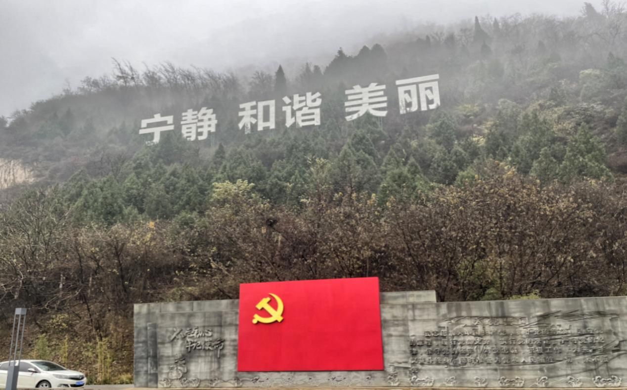 12月13日下午,研学团队在薄雾中抵达位于西安市鄠邑区的“一站三中心”。雾气氤氲中,巍巍青山上耸立着“宁静 和谐 美丽”六字标语,时刻提醒着人们珍惜秦岭之美,牢记秦岭之诫。