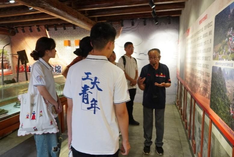 7月12日,实践队来到老君洞兵工厂历史展馆,追忆抗日战争以及“三线建设”的艰苦岁月。历史车轮滚滚向前,红色基因代代相传。聆听着讲解员的介绍,实践队员们仿佛回到了那个年代,这里的每一件展品、每一张照片,尽是见证军工艰苦而又载满荣光的历史。聆听着爱国奋斗、为国奉献的故事,实践队成员们真切体会到了那段历史的厚重与意义。一位队员感叹道:“看到这些历史遗迹和事迹,我更加清晰地认识到今天幸福生活的来之不易。”