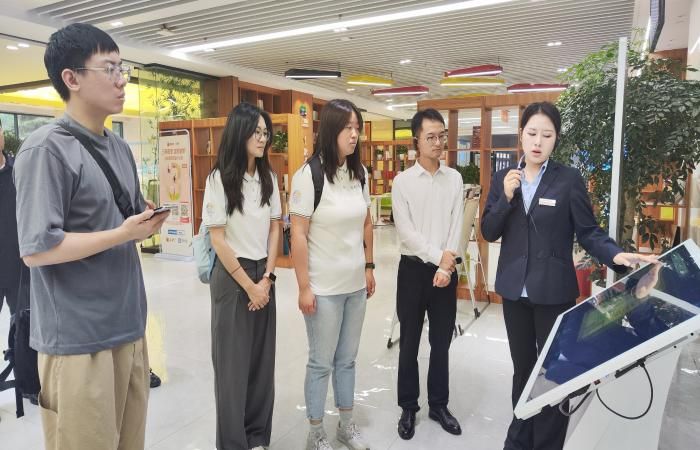 随后,实践团来到立丰城社区。立丰城社区党总支部书记、居委会主任赵青青围绕头雁便民集市、两新群体参与基层治理、“1245”工作模式、“小密丰”益商联盟、志愿者团体发展、新就业群体暖心驿站等亮点工作进行了介绍。实践团参观了头雁便民集市服务点、党群服务中心外连廊、立丰城商圈党群服务中心、共享直播间等社区党建阵地。立丰城商圈党群服务中心依托商圈资源,创新成立了益商联盟和小密丰志愿者队。该中心将流动党员管理站、新就业群体服务站、社会治理网格化工作站和社会工作服务站这四个服务站点的功能进行了整合,形成了综合性服务平台。立丰城商圈党群服务中心建立了“小密丰”共享直播间,积极探索以直播等新媒体助力社区治理、深化党群互动的新模式。陕西广播电影电视协会融媒体专业委员会主任闫晓萌以“小密丰”共享直播间为例,为实践团讲授了“新媒体在社区工作中的应用前景”专题课程。
