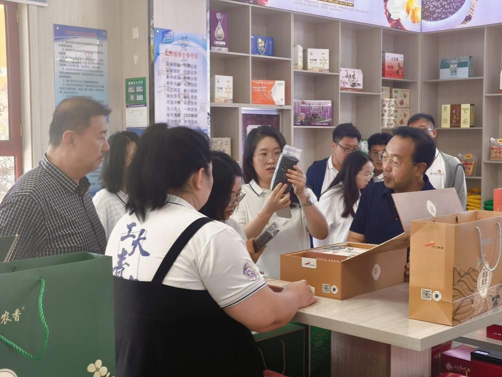 7月29日,实践队前往榆林神木市农业投资集团有限公司进行参观调研。公司董事长王克军热情讲解农业特色产品,并与师生进行座谈交流。大家对农投集团基本情况、主要业务开展等方面有了详细了解。董事长讲到,他们旨在通过打造“国香神木•石峁农香”特色品牌,利用公共品牌抓手全方位提高神木农特产品质量,提升农特产品附加值。除实体店展销,神木市农投集团积极开展线上直播模式,依托抖音带货直播间让优质特色农产品走进更多消费者视野。此外,根据农业发展需求,农投集团定期邀请农业领域的专家走进直播间培训指导,提升种植水平,提高农产品质量,增加农民营收,不断践行企业担当,强化企业社会责任。