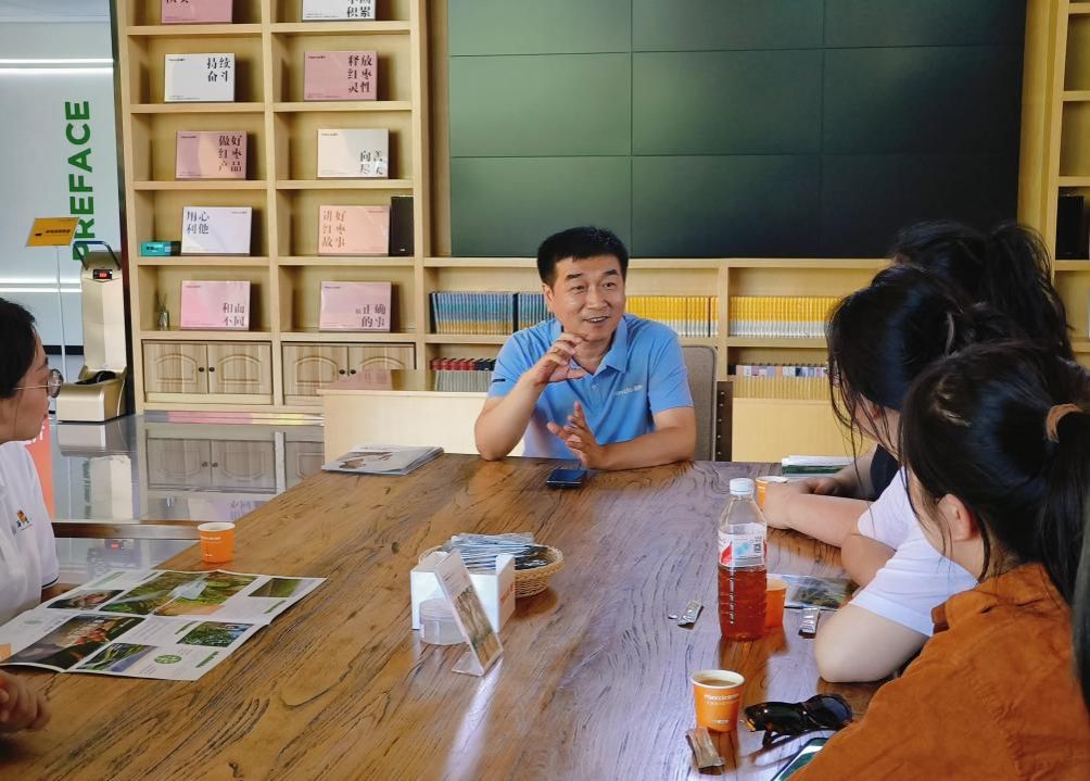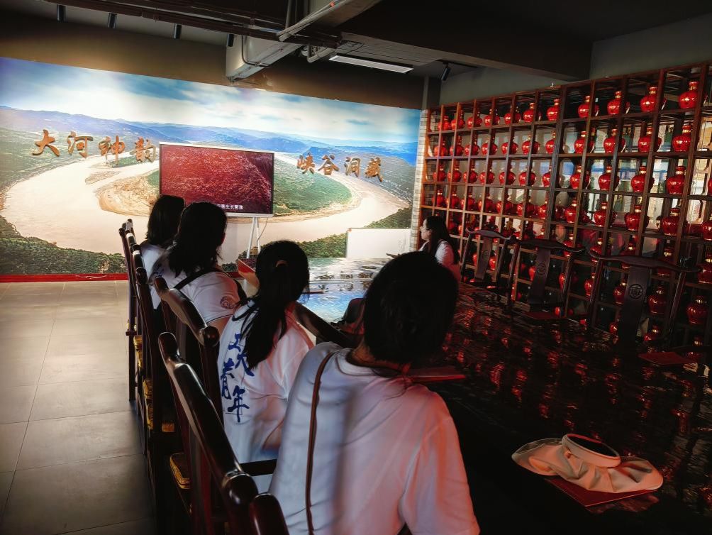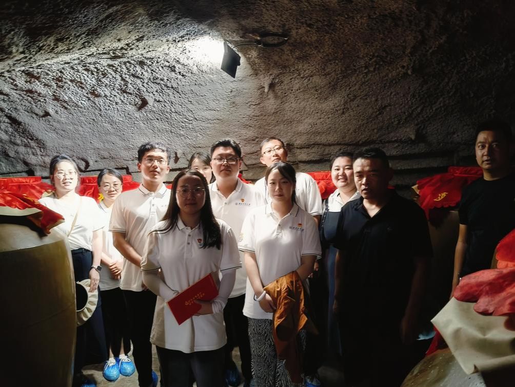 实践队围绕企业概况、制作工艺、企业创新发展与秦谊酒业创始人毛和田进行座谈,秦谊酒业秉承“生态为贵、原料为贵、传承为贵、匠心为贵、稀有为贵”理念,一方面,坚持高质量选种、科学化种植、高品质筛选、可溯源管理、专属化使用;另一方面,积极践行绿色发展理念,利用厂区屋顶分期建成6000千瓦分布式自备型光伏电站,配置750千瓦电锅炉,有效保障厂区生产、生活所需清洁能源,全环节实现零排放。随后毛和田带领大家参观秦谊洞藏酒庄。实践队员通过此次调研学习,认识到酒庄不仅是酿酒工厂,更是传承和弘扬酒文化的重要场所,对于传统酿酒的工艺制作、黄土高原生态酒窖、高粱的经济价值有了更深入的理解与感悟。