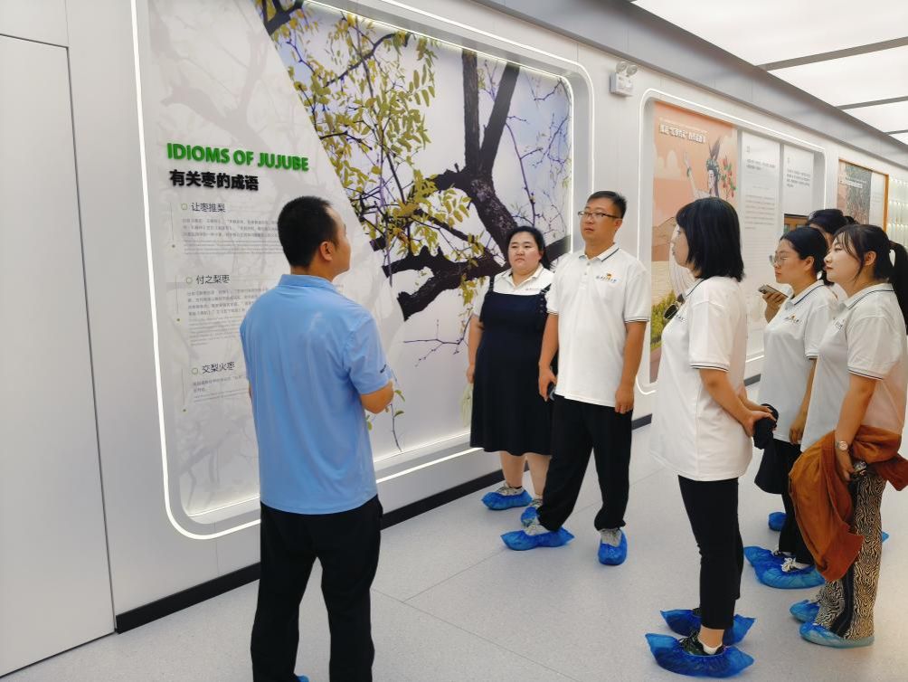 7月26日—27日,实践队赴榆林神木陕西华和实业有限公司曼乔红枣科技园参观学习。实践队员通过与品牌创始人张亮交流,了解到曼乔红枣科技园是集有机红枣种植管理、科研生产、文旅服务、科普教育为一体综合性园区。曼乔品牌的诞生,有效促进了当地红枣产业的可持续发展,为乡村振兴奠定了良好的产业基础。带着“创造品牌的初衷与愿景”“如何助推乡村振兴”等问题,实践队员参观了“黄河红枣馆”与生产加工车间,对黄河红枣产业文化有了深入全面的了解。