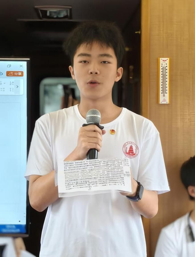 随后,孙瑞璇同学带领大家合唱《没有共产党就没有新中国》,歌声嘹亮,深切表达了同学们对党的坚定拥护和真挚情感,车厢内气氛热烈,掌声经久不息。