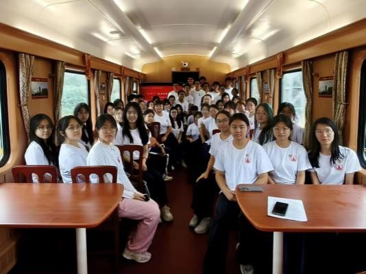 50名师生搭乘红色列车Y508次,满怀热忱奔赴革命圣地延安。这趟意义非凡的列车,通过主题宣讲、红歌传唱、知识竞答等形式,将思政课堂搬上“火车”,真正实现“行在脚下,学在途中”。