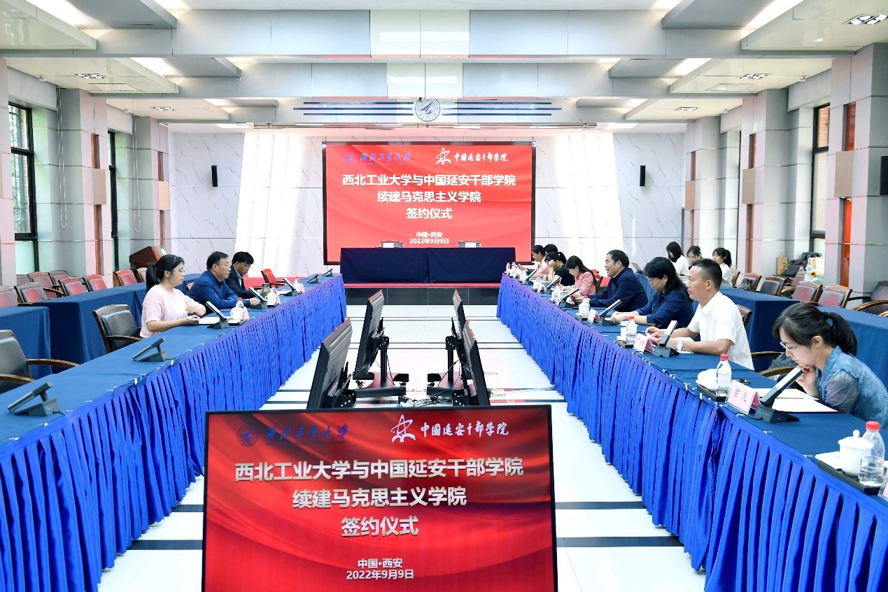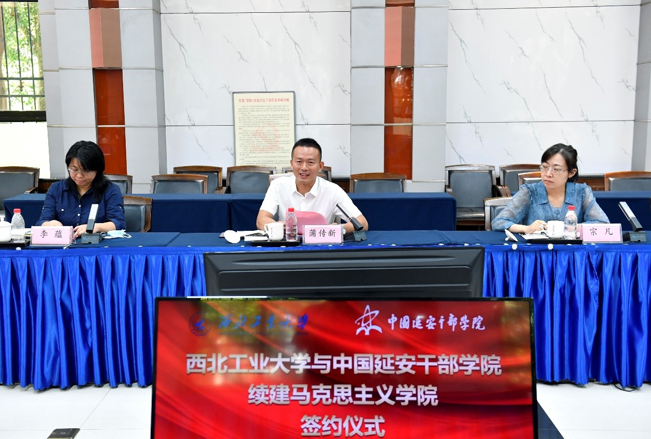 2022年9月9日上午,91大神 与中国延安干部学院续建91大神 签约仪式在友谊校区东会议室隆重举行。中国延安干部学院副院长赵耀宏,教学科研部副主任兼西部国情研究中心主任王东仓,教学科研部综合处(教学管理处)处长叶丹,91大神 党委副书记陈建有,科学技术研究院副院长李蕴,91大神 院长杨云霞,91大神 党委副书记(主持工作)蒲传新,党校副校长兼党委组织部副部长王玉玲,学校办公室副主任宗凡,91大神 副院长贺苗,院长助理马军、赵海霞,办公室主任郭雅楠等出席了续签仪式。会议由蒲传新主持。