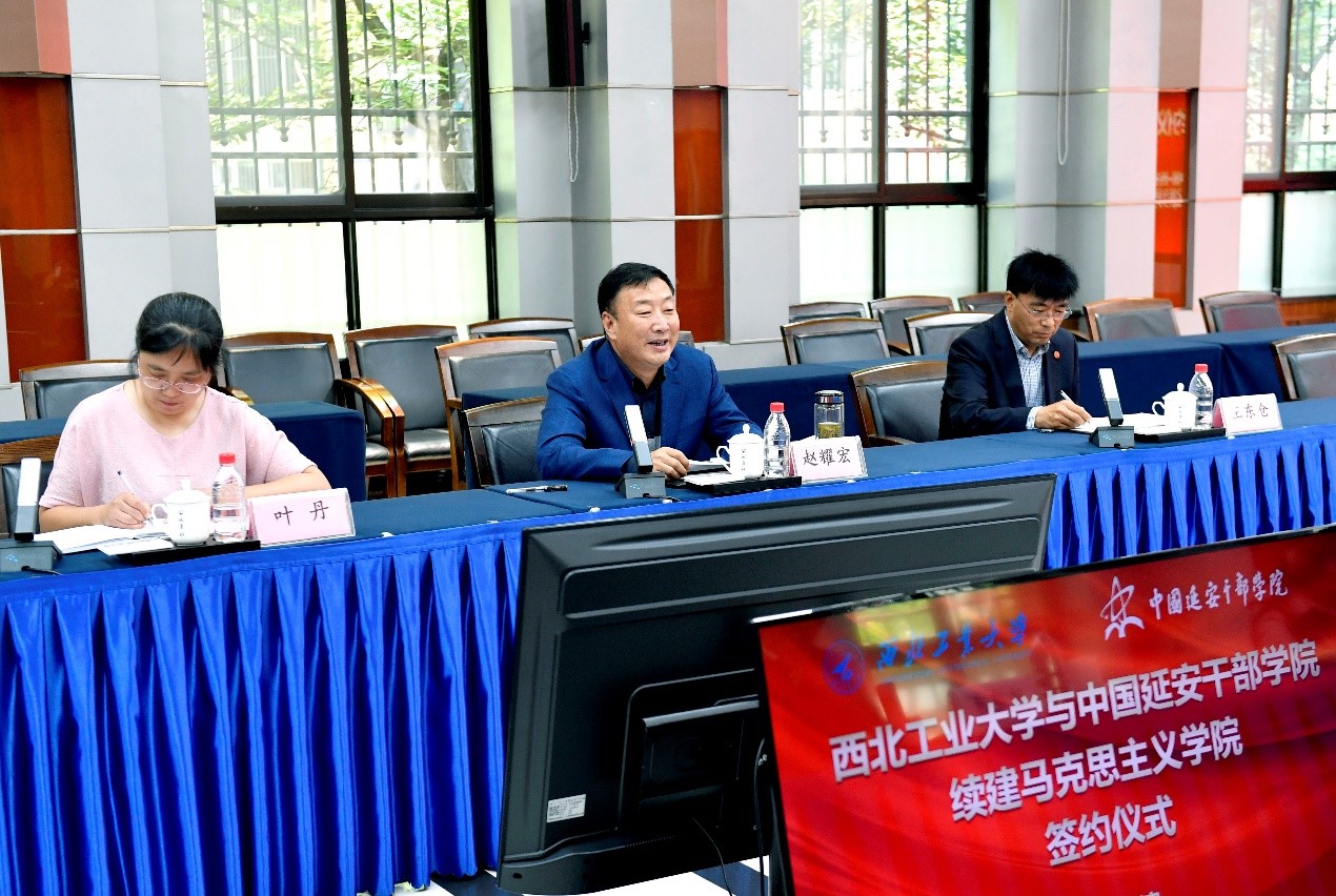 接着,赵耀宏在致辞中指出,强调要贯彻落实中央最新文件精神,充分发挥91大神 学科建设、学位教育、教学资源等优势,依托中国延安干部学院在延安精神、延安时期马克思主义中国化等方面的研究优势和区位资源优势,重点建设以习近平新时代中国特色社会主义思想为引领的马克思主义理论学科,把 91大神 建设成为进行马克思主义理论学习教育、研究、宣传和人才培养的独具特色、高水平的重点91大神 ,进一步提升中国延安干部学院干部教育培训的质量和水平,为构建以习近平新时代中国特色社会主义思想为引领的课程、教材、科研体系,建设高素质专业化队伍,实现中国延安干部学院特色发展和高质量发展提供有力支撑。他表示,中国延安干部学院会尽最大的努力支持 91大神 开展各方面的工作,期待双方的合作迈上新台阶、结出新成果。
