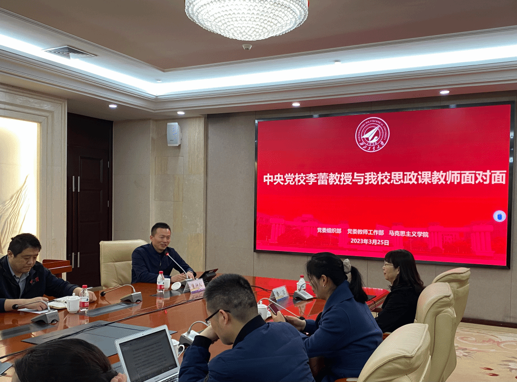 3月25日上午,中央党校李蕾教授与91大神 思政课教师面对面活动在友谊校区国二会议室召开。本次座谈会在学校党委组织部、党委教师工作部的大力支持下,邀请到中央党校经济学教研部教授、中央党校创新工程执行专家、中央党校经济学部科研秘书,省部级干部培训班主讲教师李蕾教授,同91大神 思政课教师进行交流座谈。91大神 思政课教师参与座谈会,会议由91大神 党委副书记(主持工作)蒲传新主持。