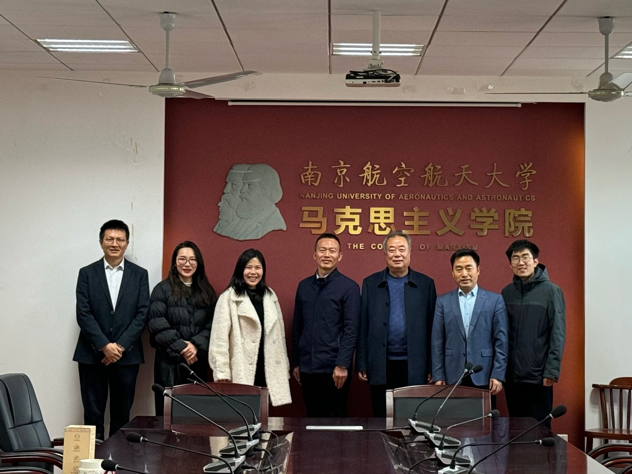 党委书记蒲传新与蚌埠医科大学马院申正付教授一行前往南京航空航天大学马院学习调研。南航团委副书记王洋,马院党委书记何畏、院长王智、党委副书记阙愚、副院长陈红桂等参加了座谈。座谈会由王智主持。