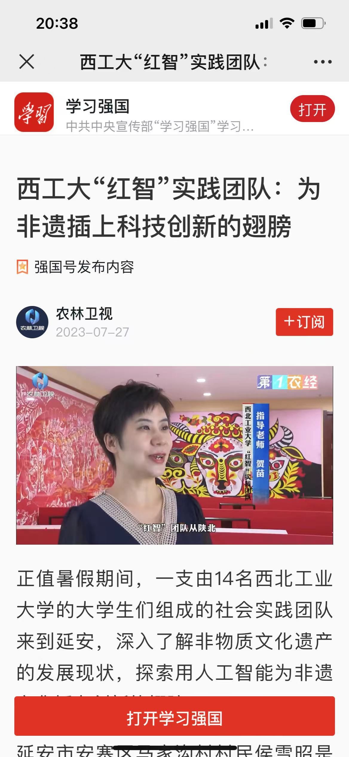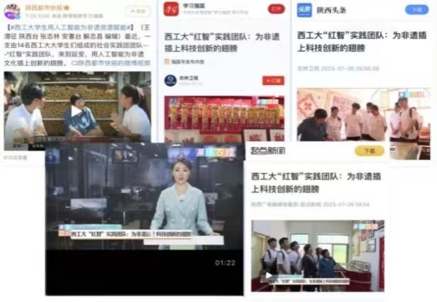在实践过程中,“红智”团队引起了社会多方关注与肯定。实践队先后获得农林卫视、学习强国、陕西省都市快报、起点新闻、陕西头条等媒体多方报道。“红智”实践队的虚拟现实建模技术、基于区块链技术的非遗销售平台等思路引起了当地非遗传承机构的广泛兴趣,后续会就此展开进一步的商讨合作。