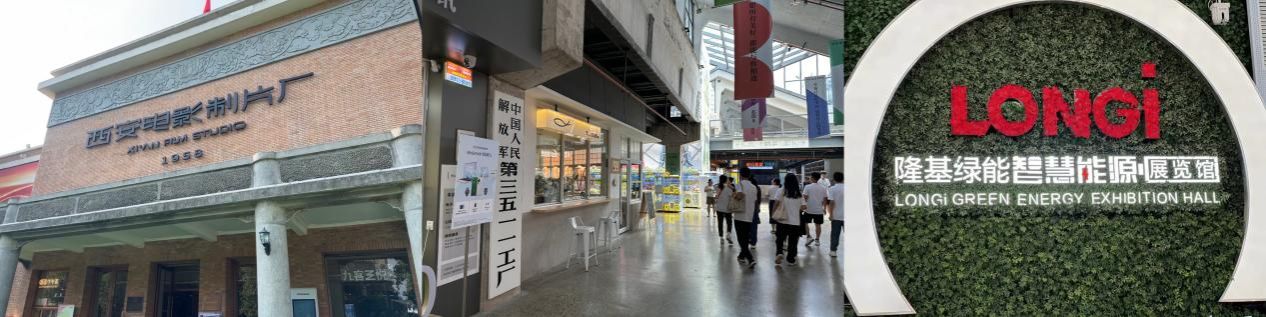 25日,实践队来到了西安市老钢厂设计创意产业园。该园区以“旧厂房,新生命”为开发理念,完成了自身的旧工业遗存改造任务,成为全国旧工业遗存改造再利用的优秀代表园区。这里依托“工业遗存”,以“设计创意”为主题,在保留老工业厂房特色建筑的基础上,融入艺术、时尚、创意等元素。同时借势而为,就地取材,展现出淋漓尽致的工业之风。漫步在青砖小道上,大家更能体会到老钢厂作为连接过去、现在和未来的时空枢纽,不仅很好地完成了保留时代记忆的历史使命,并且正在不断融入西安城市建设,逐渐成长为西安独特的城市气质与灵魂。
