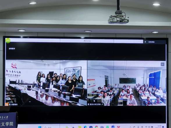 “石榴花开籽籽同心·理论宣讲声声入耳”实践队、青马先锋学生宣讲团、学生心火志愿服务队、学院志工部联合喀什市第一小学、喀什市第四小学、喀什市第三十小学开展了声入人心的理论联学活动。来自古都长安与魅力喀什的100余师生云端相聚,共铸中华民族共同体意识。本次活动由实践队队长王慧新主持。