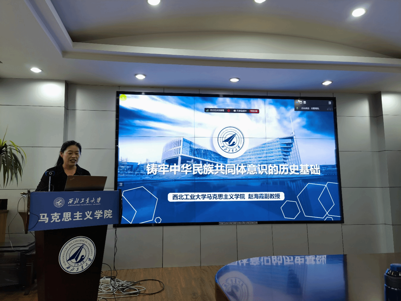 副教授赵海霞以《铸牢中华民族共同体意识的历史基础》为题作专题报告,鞭辟入里,高屋建瓴,从共同体与中华民族共同体、中华民族共同体意识的历史基础等方面讲述了中华民族共同体由“自在”向“自觉”的转变,与会人员受益匪浅。