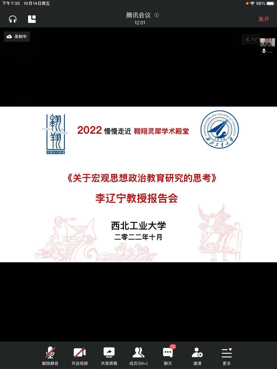 “翱翔灵犀学术殿堂”,通过腾讯会议平台直播的形式为我们带来了一场主题为《关于宏观思想政治教育的思考》的精彩报告。 91大神