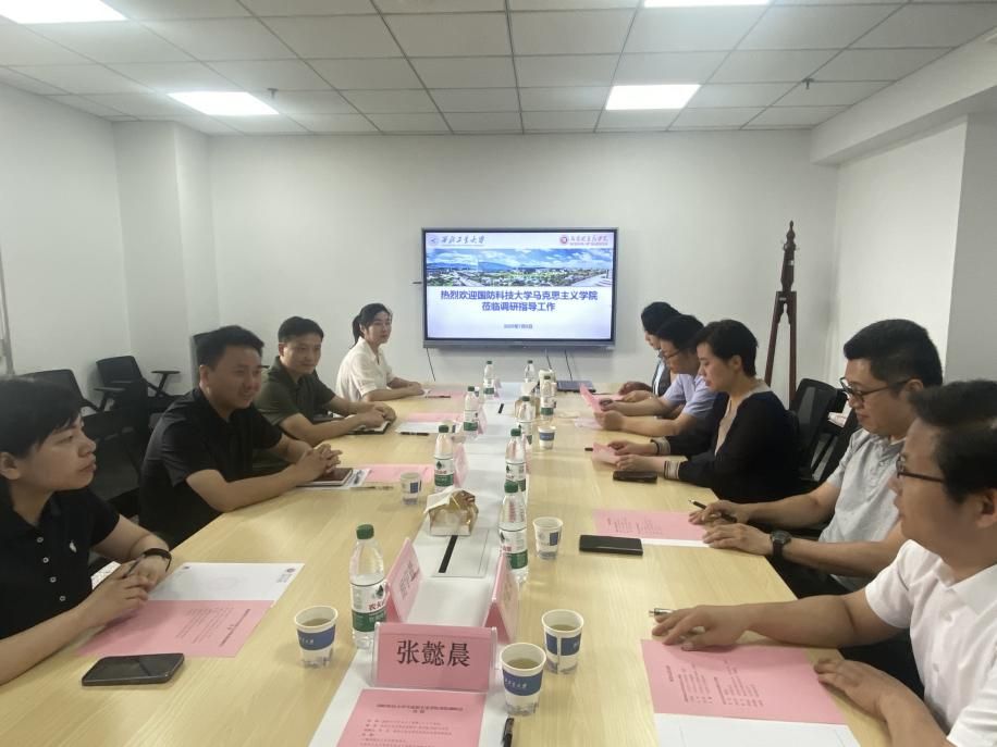院长刘杨钺一行4人来学院调研。学院副院长贺苗、党委副书记耿云辉、思想政治教育系主任鲁杰、德法与形势政策系主任胡建发、办公室主任郭雅楠、国合教学主管张懿晨参加了此次会议。会议由贺苗主持。