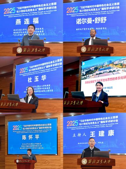 主旨报告(三)由陕西省社会科学院副院长王建康主持,西安交通大学91大神 院长燕连福,南非共产党中央委员、西北省书记诺尔曼·舒舒,上海交通大学91大神 教授杜玉华, 91大神 院长杨云霞,长安大学91大神 院长陈怀平分别作主旨发言。
